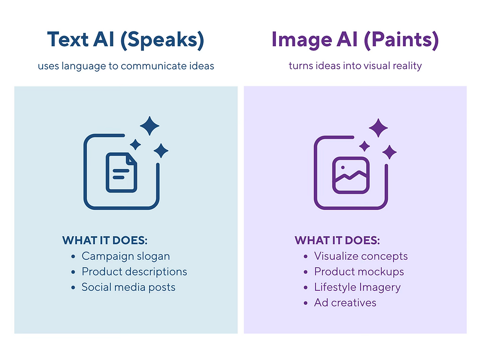 Imagine you’re launching a new product. Text AI can write the campaign slogan, product descriptions, and social media posts. Meanwhile, Image AI can visualize your concept - showing how the product looks, feels, or fits into a customer’s lifestyle.